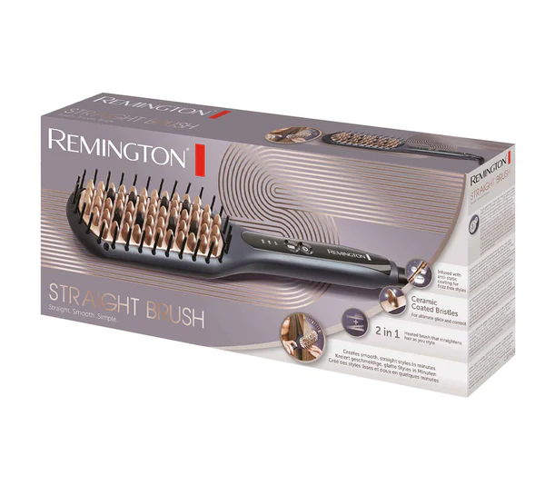 Straighten and brush in one easy step! The Remington Professional Style Straightening Hair Brush combines smooth-slide bristles with salon-quality high heat to save you time creating beautiful styles. Digital controls make it easy to choose from three heat settings (450°F max) and find the best performance for your hair type. The advanced ceramic coating helps prevent frizz and static, and the swivel cord lets you style at any angle.
