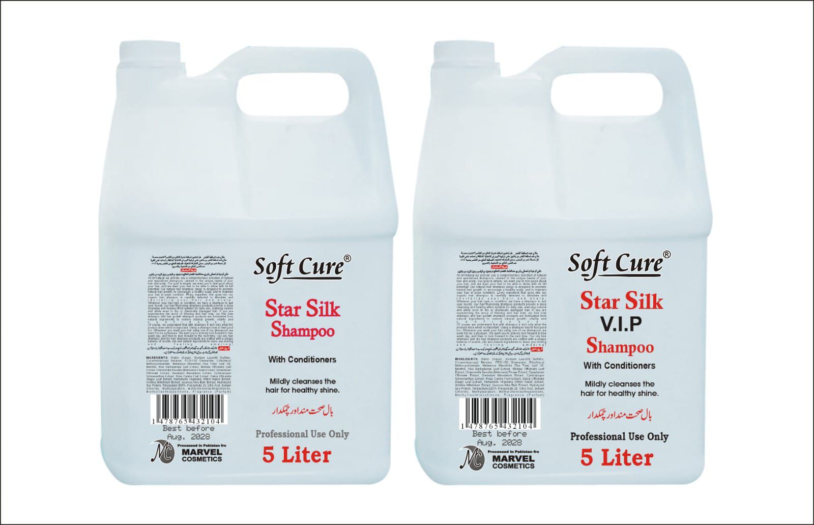Soft Cure Star Silk Shampoo ek professional salon shampoo hai jo hair ko gently cleanse karta hai aur conditioner formula ke sath hair ko soft aur silky banata hai.