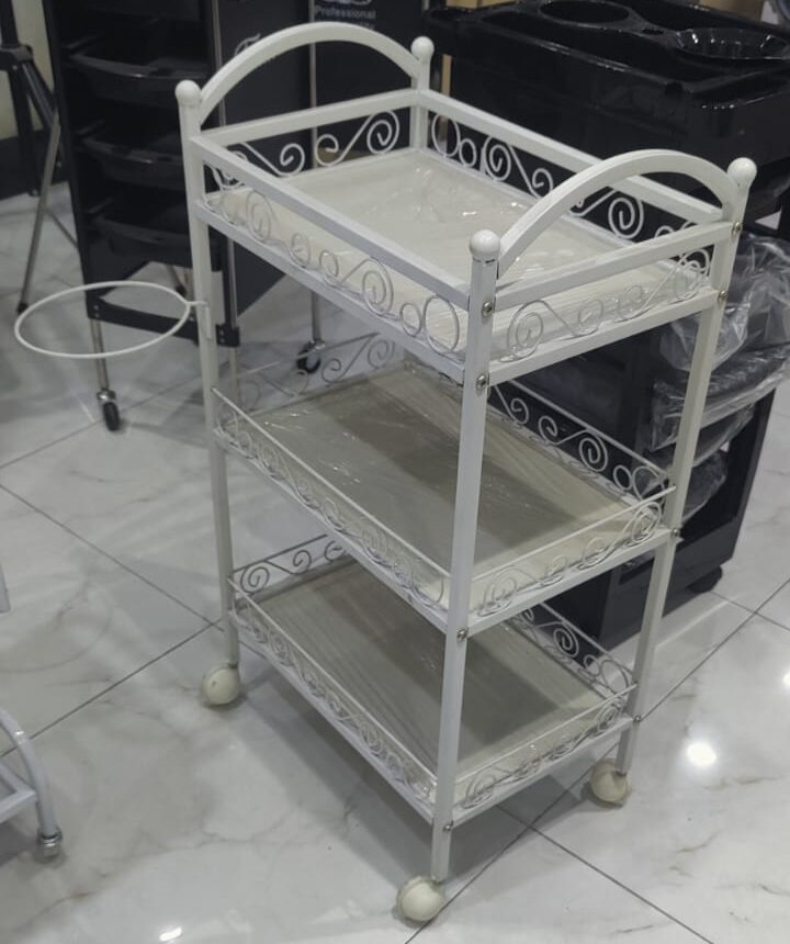Add a touch of vintage-inspired elegance to your workspace with this ornate, high-utility mobile trolley. Its delicate scrollwork design makes it a perfect choice for beauty salons and boutiques that value a decorative, feminine aesthetic.